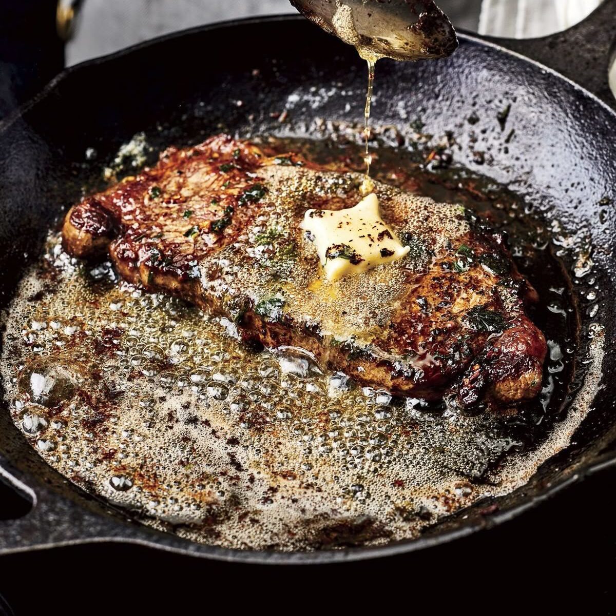 Baste it over the steak for about 1 minute.